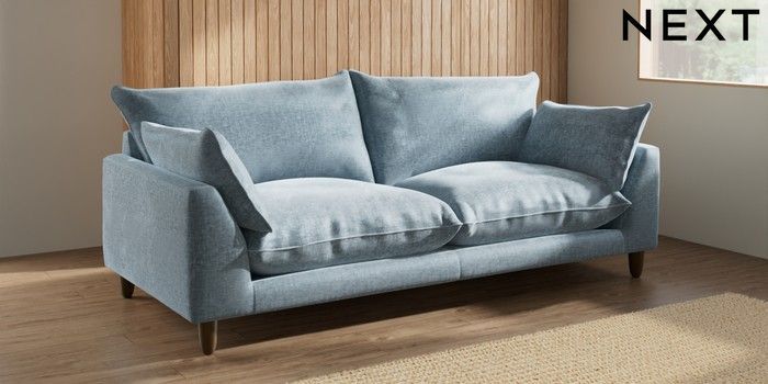7.2.10 Buy Noa Deep Relaxed Sit 3 Seater Sofa Plush Chenille Light Blue High Leg - Mid from the Seasons online shop Click here to use our website with more accessibility support, for example screen readers