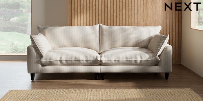 7.3.1 Buy Noa Deep Relaxed Sit 4 Seater Sofa Chenille Stripe Natural High Leg - Dark from the Seasons online shop Click here to use our website with more accessibility support, for example screen readers