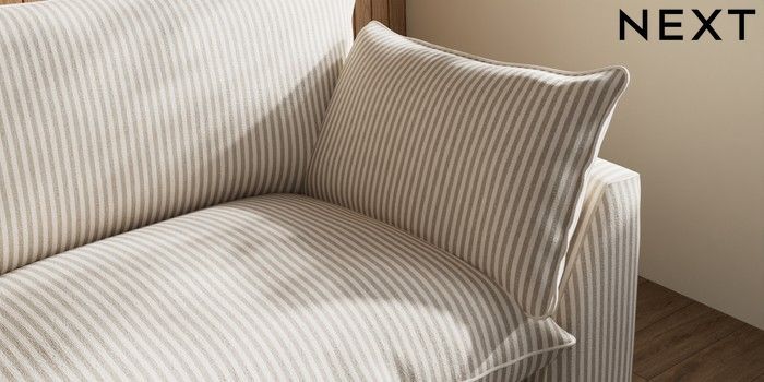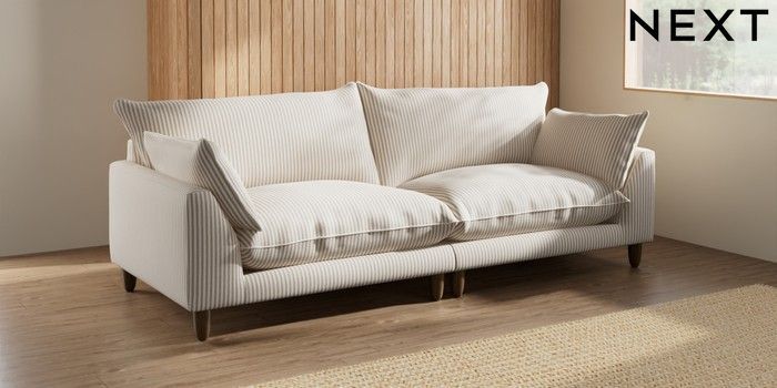7.3.1 Buy Noa Deep Relaxed Sit 4 Seater Sofa Chenille Stripe Natural High Leg - Mid from the Seasons online shop Click here to use our website with more accessibility support, for example screen readers
