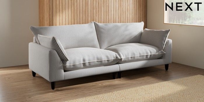 7.3.1 Buy Noa Deep Relaxed Sit 4 Seater Sofa Chenille Stripe Slate Blue High Leg - Dark from the Seasons online shop Click here to use our website with more accessibility support, for example screen readers