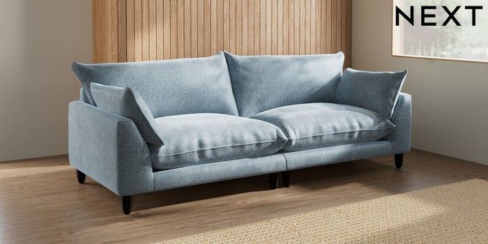 7.2.10 Buy Noa Deep Relaxed Sit 4 Seater Sofa Plush Chenille Light Blue High Leg - Dark from the Seasons online shop Click here to use our website with more accessibility support, for example screen readers