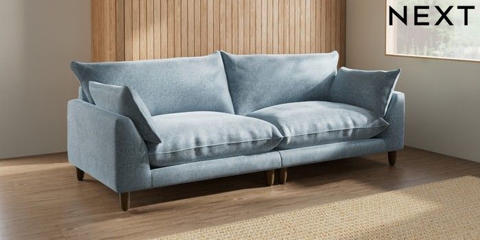 7.2.10 Buy Noa Deep Relaxed Sit 4 Seater Sofa Plush Chenille Light Blue High Leg - Mid from the Seasons online shop Click here to use our website with more accessibility support, for example screen readers