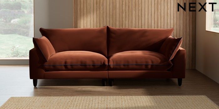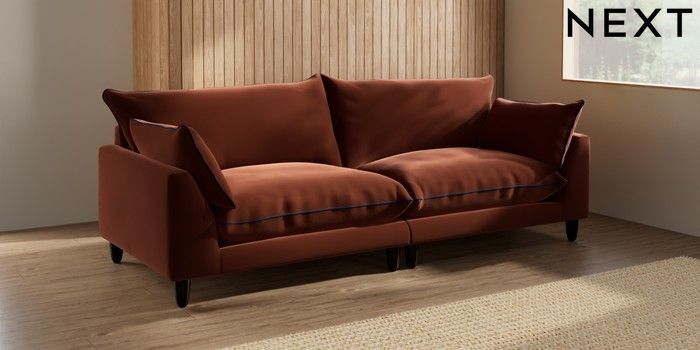 7.3.1 Buy Noa Deep Relaxed Sit 4 Seater Sofa Plush Velvet with Contrast Ginger Orange with Navy Blue High Leg - Dark from the Seasons online shop Click here to use our website with more accessibility support, for example screen readers