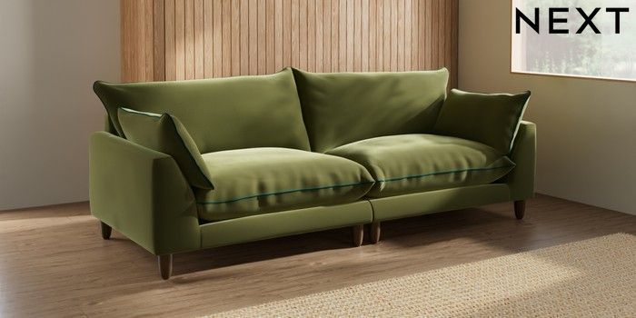 7.3.1 Buy Noa Deep Relaxed Sit 4 Seater Sofa Plush Velvet with Contrast Mid Olive Grn with Juniper Grn High Leg - Mid from the Seasons online shop Click here to use our website with more accessibility support, for example screen readers