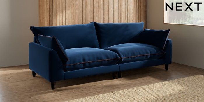 7.3.1 Buy Noa Deep Relaxed Sit 4 Seater Sofa Plush Velvet with Contrast Navy Blue with Ginger Orange High Leg - Dark from the Seasons online shop Click here to use our website with more accessibility support, for example screen readers