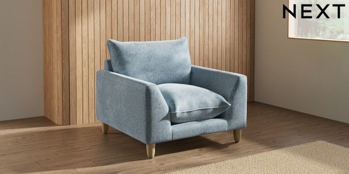 7.2.10 Buy Noa Deep Relaxed Sit Armchair Plush Chenille Light Blue High Leg - Light from the Seasons online shop Click here to use our website with more accessibility support, for example screen readers