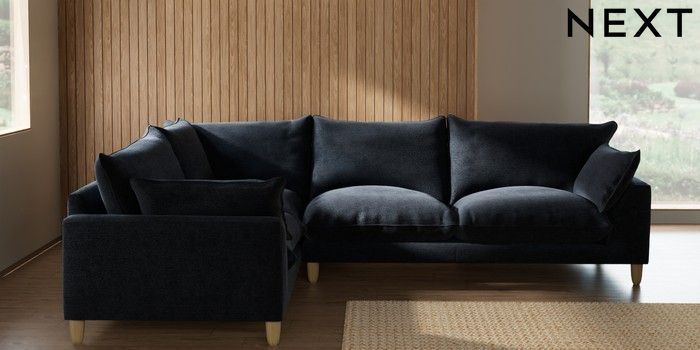 7.2.10 Buy Noa Deep Relaxed Sit Large Corner Sofa - Left Hand Boucle Chenille Dark Slate Blue High Leg - Light from the Seasons online shop Click here to use our website with more accessibility support, for example screen readers