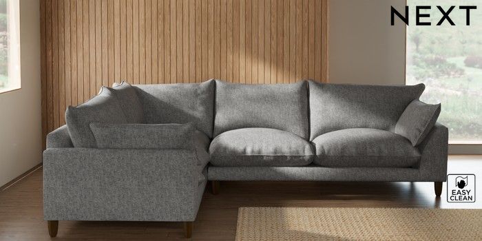 7.2.10 Buy Noa Deep Relaxed Sit Large Corner Sofa - Left Hand Chunky Boucle Easy Clean Light Grey High Leg - Mid from the Seasons online shop Click here to use our website with more accessibility support, for example screen readers