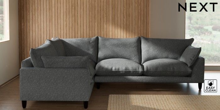 7.2.10 Buy Noa Deep Relaxed Sit Large Corner Sofa - Left Hand Chunky Boucle Easy Clean Mid Grey High Leg - Dark from the Seasons online shop Click here to use our website with more accessibility support, for example screen readers