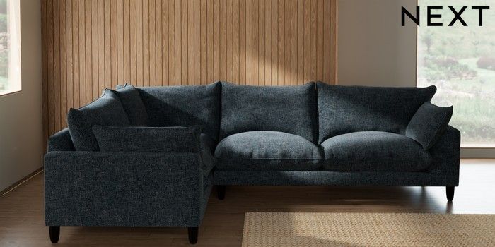 7.2.10 Buy Noa Deep Relaxed Sit Large Corner Sofa - Left Hand Chunky Chenille Dark Navy Blue High Leg - Dark from the Seasons online shop Click here to use our website with more accessibility support, for example screen readers