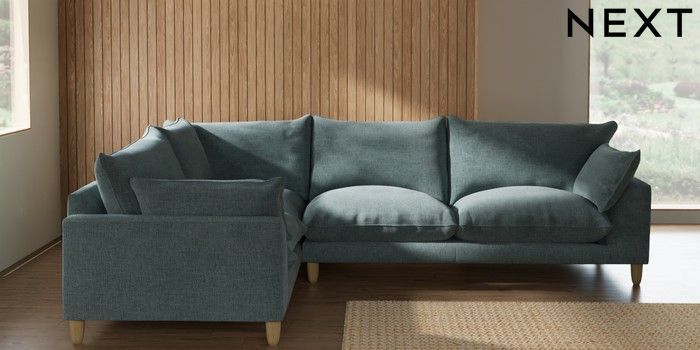 7.2.10 Buy Noa Deep Relaxed Sit Large Corner Sofa - Left Hand Chunky Chenille Light Teal Green High Leg - Light from the Seasons online shop Click here to use our website with more accessibility support, for example screen readers