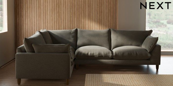 7.2.10 Buy Noa Deep Relaxed Sit Large Corner Sofa - Left Hand Chunky Marl Light Olive Green High Leg - Mid from the Seasons online shop Click here to use our website with more accessibility support, for example screen readers
