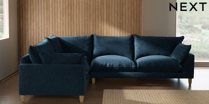 7.2.10 Buy Noa Deep Relaxed Sit Large Corner Sofa - Left Hand Cotswold Chenille Dark Blue High Leg - Light from the Seasons online shop Click here to use our website with more accessibility support, for example screen readers