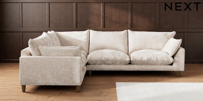 7.2.10 Buy Noa Deep Relaxed Sit Large Corner Sofa - Left Hand Distressed Velour Mid Natural High Leg - Mid from the Seasons online shop Click here to use our website with more accessibility support, for example screen readers