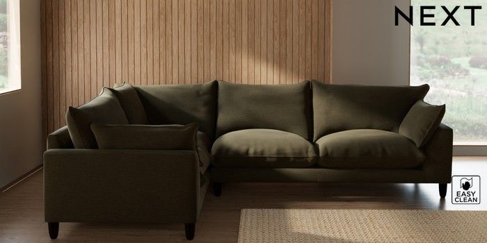 7.3.1 Buy Noa Deep Relaxed Sit Large Corner Sofa - Left Hand Fine Chenille Easy Clean Dark Moss Green High Leg - Dark from the Seasons online shop Click here to use our website with more accessibility support, for example screen readers