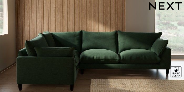 7.3.1 Buy Noa Deep Relaxed Sit Large Corner Sofa - Left Hand Fine Chenille Easy Clean Mid Khaki Green High Leg - Dark from the Seasons online shop Click here to use our website with more accessibility support, for example screen readers