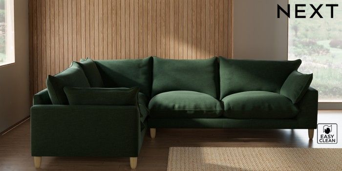 7.2.10 Buy Noa Deep Relaxed Sit Large Corner Sofa - Left Hand Fine Chenille Easy Clean Mid Khaki Green High Leg - Light from the Seasons online shop Click here to use our website with more accessibility support, for example screen readers