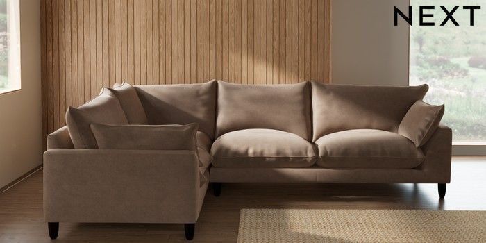 7.2.10 Buy Noa Deep Relaxed Sit Large Corner Sofa - Left Hand Luxe Chenille Mid Natural High Leg - Dark from the Seasons online shop Click here to use our website with more accessibility support, for example screen readers