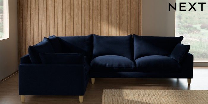 7.2.10 Buy Noa Deep Relaxed Sit Large Corner Sofa - Left Hand Luxe Chenille Navy Blue High Leg - Light from the Seasons online shop Click here to use our website with more accessibility support, for example screen readers