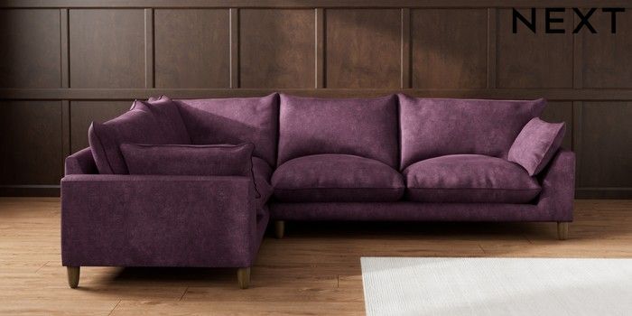 7.3.1 Buy Noa Deep Relaxed Sit Large Corner Sofa - Left Hand Plush Chenille Dark Plum Purple High Leg - Mid from the Seasons online shop Click here to use our website with more accessibility support, for example screen readers