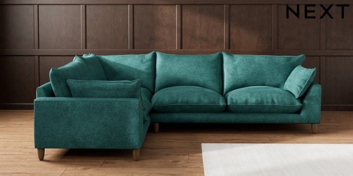 7.2.10 Buy Noa Deep Relaxed Sit Large Corner Sofa - Left Hand Plush Chenille Dark Teal Green High Leg - Mid from the Seasons online shop Click here to use our website with more accessibility support, for example screen readers