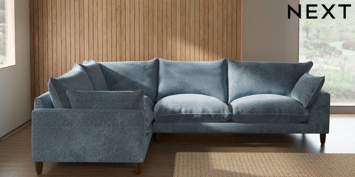 7.2.10 Buy Noa Deep Relaxed Sit Large Corner Sofa - Left Hand Plush Chenille Light Blue High Leg - Mid from the Seasons online shop Click here to use our website with more accessibility support, for example screen readers
