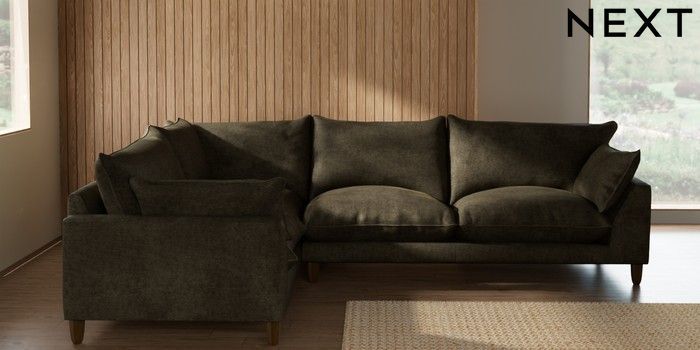 7.2.10 Buy Noa Deep Relaxed Sit Large Corner Sofa - Left Hand Plush Chenille Moss Green High Leg - Mid from the Seasons online shop Click here to use our website with more accessibility support, for example screen readers