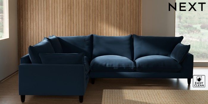 7.3.1 Buy Noa Deep Relaxed Sit Large Corner Sofa - Left Hand Plush Velvet Easy Clean Airforce Blue High Leg - Dark from the Seasons online shop Click here to use our website with more accessibility support, for example screen readers