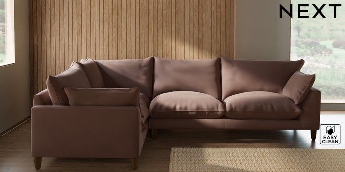 7.3.1 Buy Noa Deep Relaxed Sit Large Corner Sofa - Left Hand Plush Velvet Easy Clean Mid Natural High Leg - Mid from the Seasons online shop Click here to use our website with more accessibility support, for example screen readers