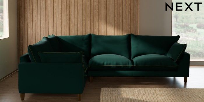 7.3.1 Buy Noa Deep Relaxed Sit Large Corner Sofa - Left Hand Plush Velvet with Contrast Bottle Grn with Mid Olive Grn High Leg - Mid from the Seasons online shop Click here to use our website with more accessibility support, for example screen readers