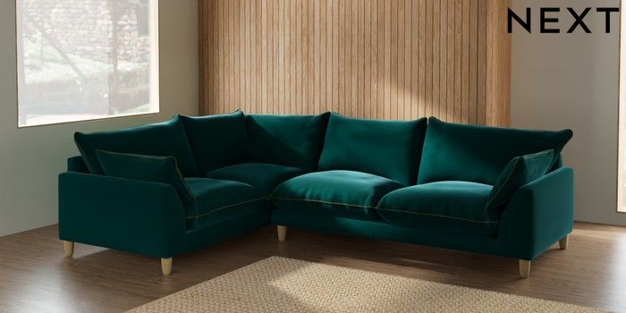 7.3.1 Buy Noa Deep Relaxed Sit Large Corner Sofa - Left Hand Plush Velvet with Contrast Juniper Grn with Mid Olive Grn High Leg - Light from the Seasons online shop Click here to use our website with more accessibility support, for example screen readers