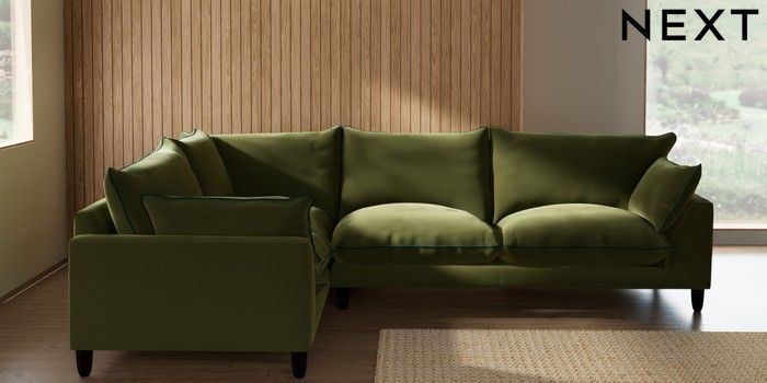 7.3.1 Buy Noa Deep Relaxed Sit Large Corner Sofa - Left Hand Plush Velvet with Contrast Mid Olive Grn with Juniper Grn High Leg - Dark from the Seasons online shop Click here to use our website with more accessibility support, for example screen readers