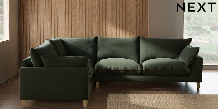 7.3.1 Buy Noa Deep Relaxed Sit Large Corner Sofa - Left Hand Relaxed Linen Look Dark Green High Leg - Light from the Seasons online shop Click here to use our website with more accessibility support, for example screen readers