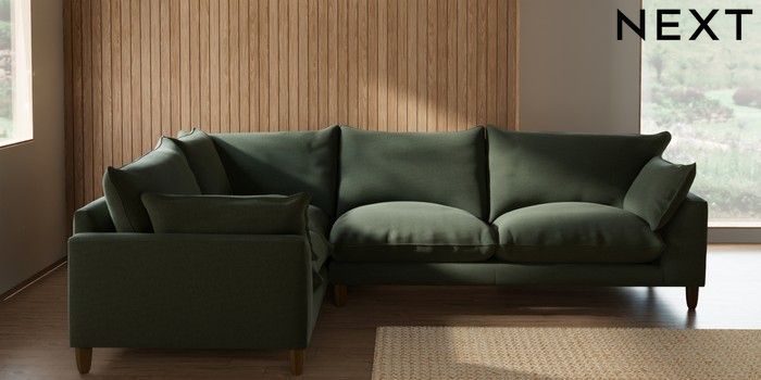 7.3.1 Buy Noa Deep Relaxed Sit Large Corner Sofa - Left Hand Relaxed Linen Look Dark Green High Leg - Mid from the Seasons online shop Click here to use our website with more accessibility support, for example screen readers