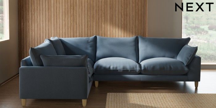 7.2.10 Buy Noa Deep Relaxed Sit Large Corner Sofa - Left Hand Relaxed Linen Look Mid Blue High Leg - Light from the Seasons online shop Click here to use our website with more accessibility support, for example screen readers