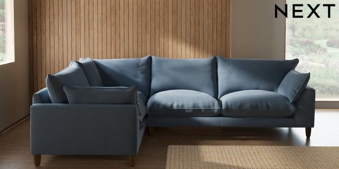7.2.10 Buy Noa Deep Relaxed Sit Large Corner Sofa - Left Hand Relaxed Linen Look Mid Blue High Leg - Mid from the Seasons online shop Click here to use our website with more accessibility support, for example screen readers