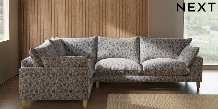 7.3.1 Buy Noa Deep Relaxed Sit Large Corner Sofa - Left Hand Relaxed Linen Look Print Woodblock Floral Blue High Leg - Light from the Seasons online shop Click here to use our website with more accessibility support, for example screen readers