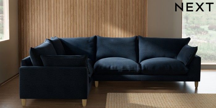 7.2.10 Buy Noa Deep Relaxed Sit Large Corner Sofa - Left Hand Ripple Chenille Dark Blue High Leg - Light from the Seasons online shop Click here to use our website with more accessibility support, for example screen readers