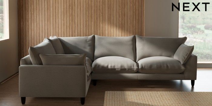 7.2.10 Buy Noa Deep Relaxed Sit Large Corner Sofa - Left Hand Ripple Chenille Light Natural High Leg - Dark from the Seasons online shop Click here to use our website with more accessibility support, for example screen readers