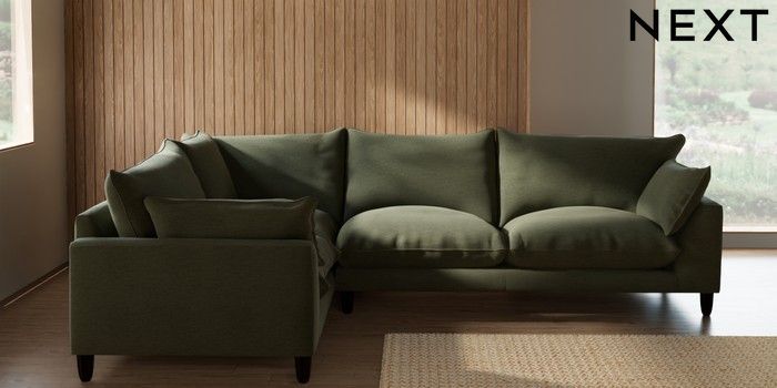 7.2.10 Buy Noa Deep Relaxed Sit Large Corner Sofa - Left Hand Ripple Chenille Mid Moss Green High Leg - Dark from the Seasons online shop Click here to use our website with more accessibility support, for example screen readers
