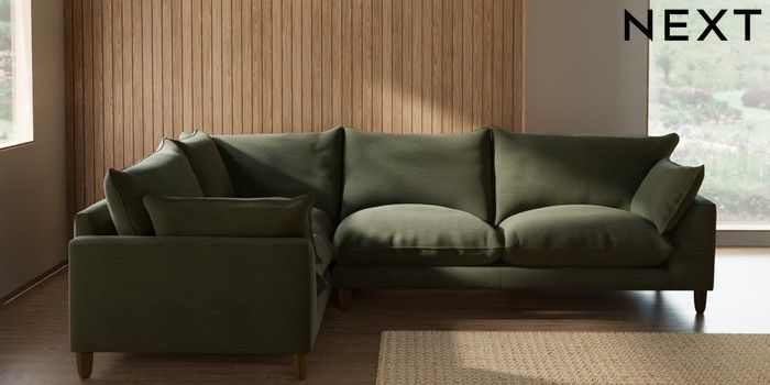 7.2.10 Buy Noa Deep Relaxed Sit Large Corner Sofa - Left Hand Ripple Chenille Mid Moss Green High Leg - Mid from the Seasons online shop Click here to use our website with more accessibility support, for example screen readers
