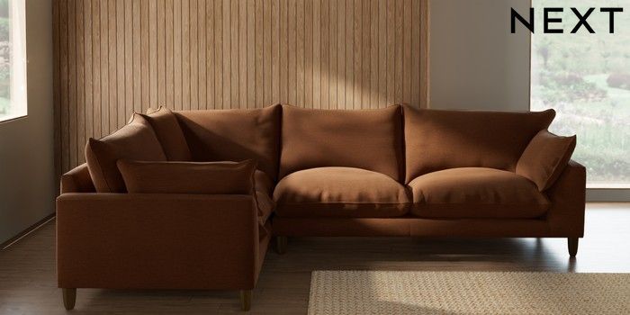 7.2.10 Buy Noa Deep Relaxed Sit Large Corner Sofa - Left Hand Ripple Chenille Mid Rust Brown High Leg - Mid from the Seasons online shop Click here to use our website with more accessibility support, for example screen readers