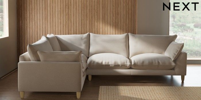 7.2.10 Buy Noa Deep Relaxed Sit Large Corner Sofa - Left Hand Studio Chenille Oyster High Leg - Light from the Seasons online shop Click here to use our website with more accessibility support, for example screen readers