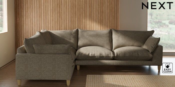 7.2.10 Buy Noa Deep Relaxed Sit Large Corner Sofa - Left Hand Woven Chenille Easy Clean Mid Natural High Leg - Light from the Seasons online shop Click here to use our website with more accessibility support, for example screen readers