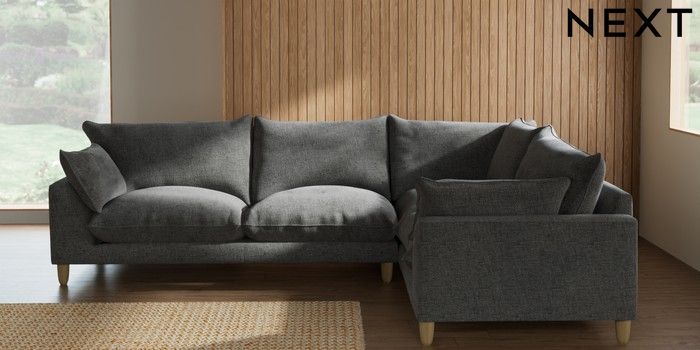 7.2.10 Buy Noa Deep Relaxed Sit Large Corner Sofa - Right Hand Chunky Chenille Dark Grey High Leg - Light from the Seasons online shop Click here to use our website with more accessibility support, for example screen readers