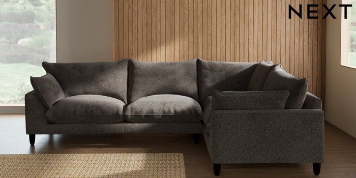 7.2.10 Buy Noa Deep Relaxed Sit Large Corner Sofa - Right Hand Chunky Chenille Mink Brown High Leg - Dark from the Seasons online shop Click here to use our website with more accessibility support, for example screen readers
