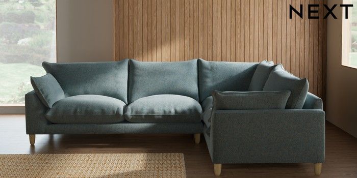 7.2.10 Buy Noa Deep Relaxed Sit Large Corner Sofa - Right Hand Chunky Marl Mid Blue High Leg - Light from the Seasons online shop Click here to use our website with more accessibility support, for example screen readers