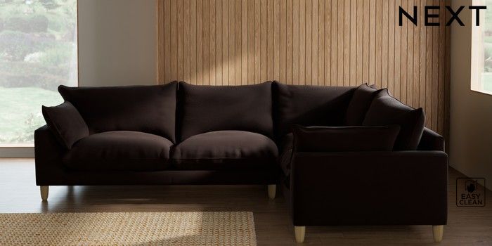 7.2.10 Buy Noa Deep Relaxed Sit Large Corner Sofa - Right Hand Fine Chenille Easy Clean Chocolate Brown High Leg - Light from the Seasons online shop Click here to use our website with more accessibility support, for example screen readers
