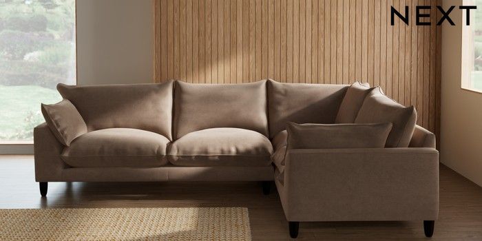 7.2.10 Buy Noa Deep Relaxed Sit Large Corner Sofa - Right Hand Luxe Chenille Mid Natural High Leg - Dark from the Seasons online shop Click here to use our website with more accessibility support, for example screen readers