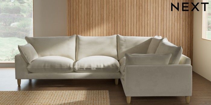 7.2.10 Buy Noa Deep Relaxed Sit Large Corner Sofa - Right Hand Luxe Chenille Oyster High Leg - Light from the Seasons online shop Click here to use our website with more accessibility support, for example screen readers
